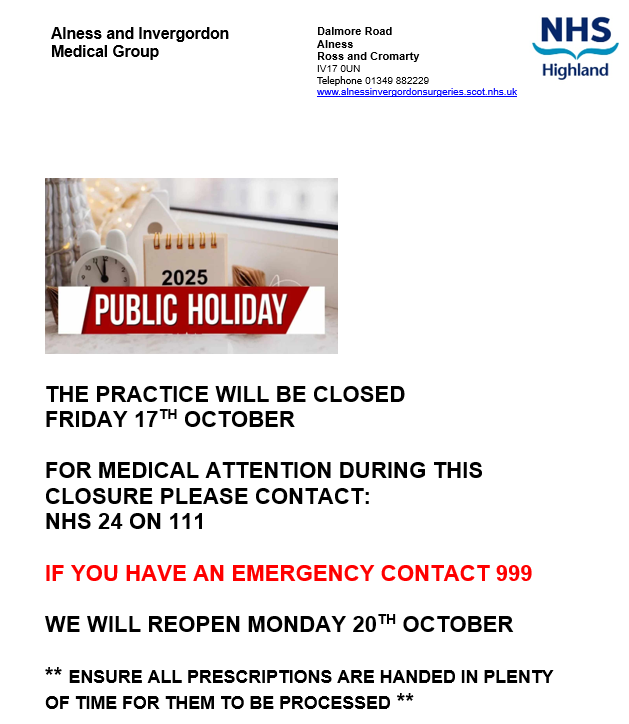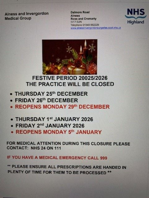 Alness and Invergordon Medical Group is an NHS GP Practice that provides general medical healthcare services to a population of 13,500.